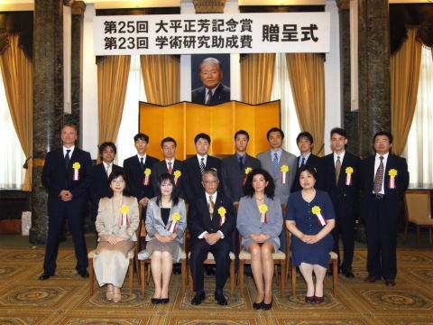受賞者の皆さんと大平裕理事長(前列中央)