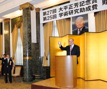 平成23年6月10日(金)、財団合同役員会の後、正午から約350人の出席のもと 「第26回大平正芳記念賞」「第24回環太平洋学術研究助成費」の贈呈式が、東京・丸の内の日本工業倶楽部会館3階大ホール・中ホールで開かれました。
