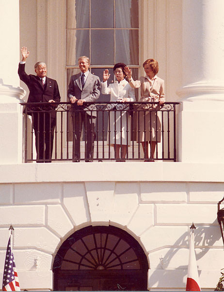 バルコニーから米国市民に挨拶する日米首脳夫妻